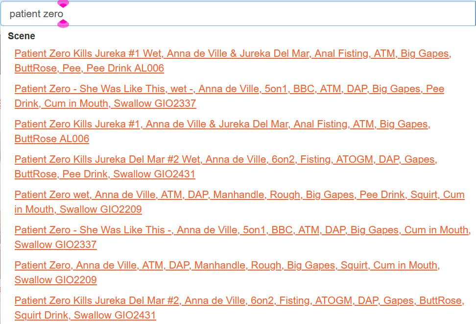 danielgjr wrote:Where is the #1 of Patient Zero Kills Jureka Del Mar #2 Wet, Anna de Ville, 6on2, Fisting, ATOGM, DAP, Gapes, ButtRose, Pee Drink, Swallow ?????