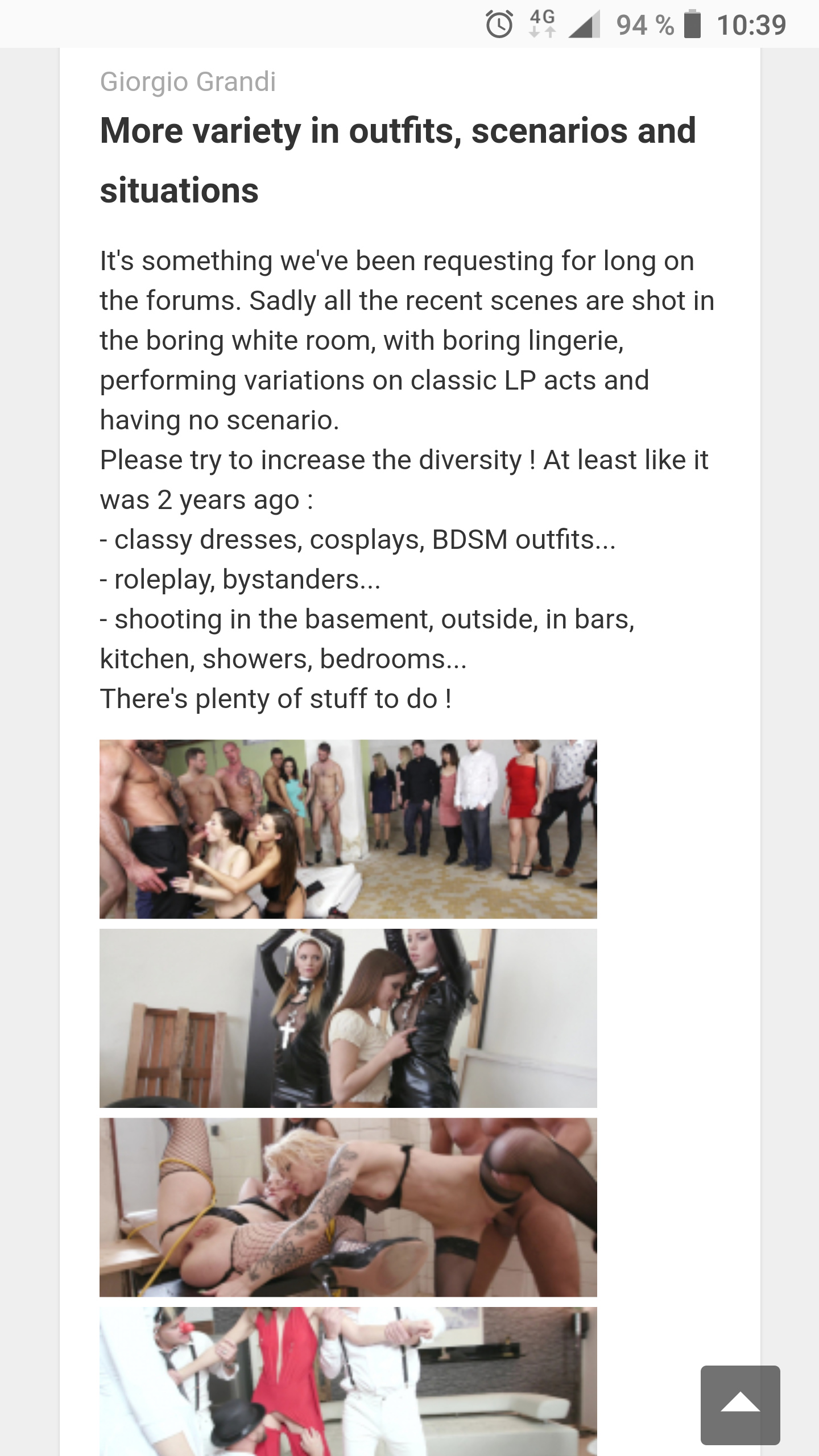 Some users complain about the lack of new faces because of bad or no scouting. Giorgio replied that scouting indeed is a problem nowadays and that new models are always a risk because of bad sales. Maybe the "uniformity" of the scenes is the significant reason why scenes with new models mostly sell not good. Why should someone buy a scene with an unknown model introducing her with rather soft action, when he can buy "the same scene" with a well-known and already popular model including rough action...