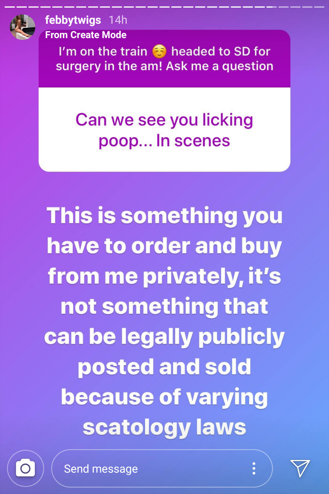 hitman776 wrote:he said she is shooting a piss scene tomorrow