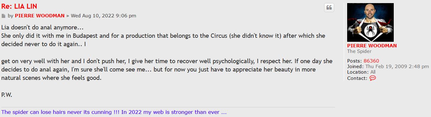 If you care for a girls wellbeing on set, it was long obvious that NRX didnt let her grow as a porn model. They could made a superstar of her, but instead they lost her to the worst manipulator and women abuser in porn.Its a thin line we walk here, but its very easy to attack Nick Rock compared to where Lia Lin could have gone for work with true LP core studios. I dont claim all is ideal, but that mess we have now here is an anti-porn mess basically.