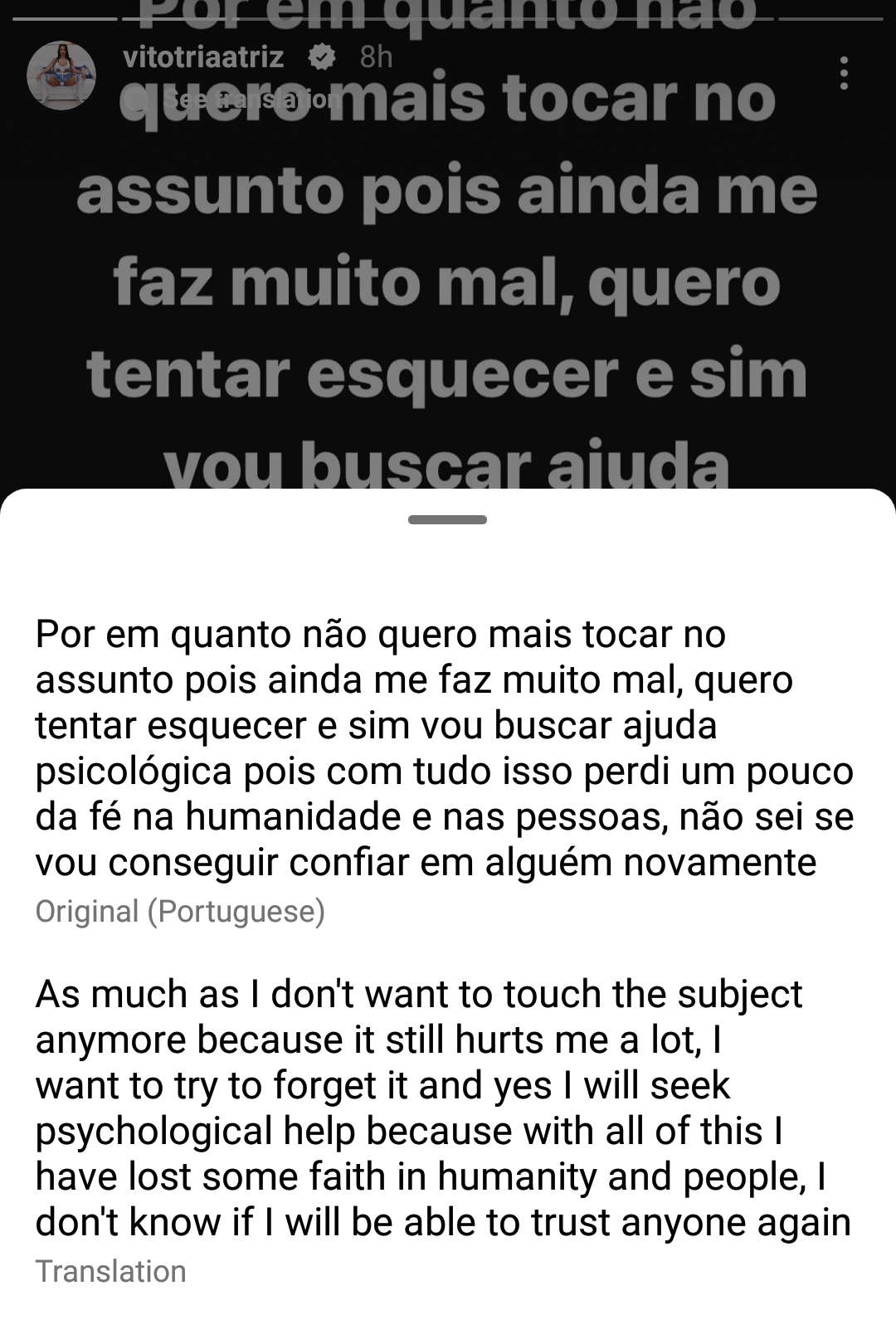 She streamed it live and posted it on her social media account (insta @vitotriaatriz) as a "highlight" Brave girl. Reminds me of the Manchester United soccer player Mason Greenwood leaks, where his girlfriend also leaked the domestic abuse video and audio on her social media: