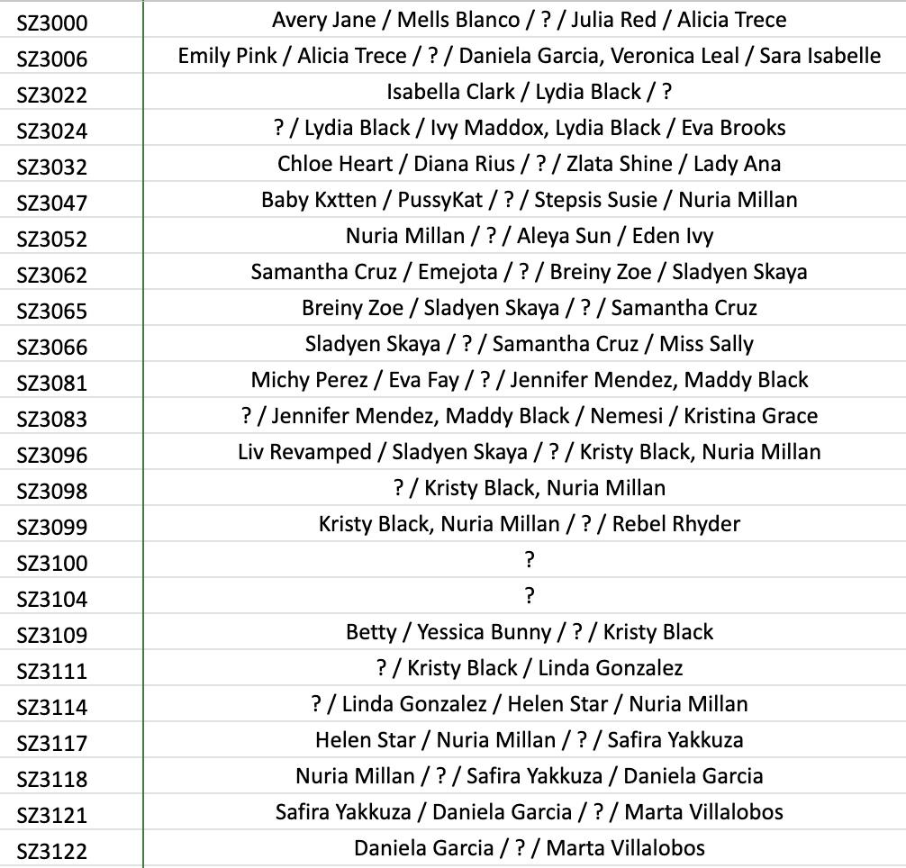 Ok with the new release of Ms Marta Villalobos, the last one remaining is SZ3123, since the beginning, there have been quite a few videos released.