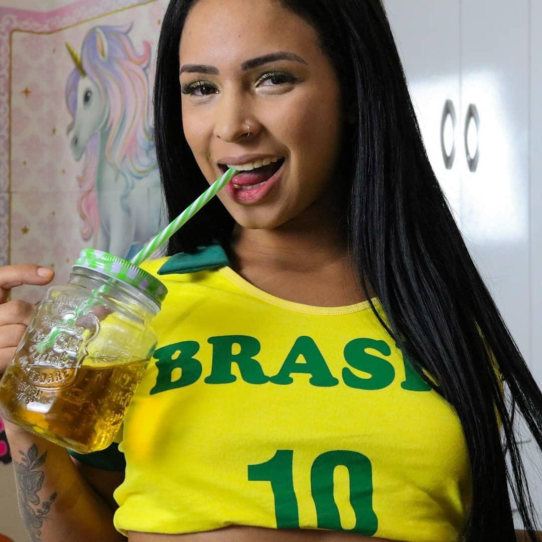 Polly, a force to be reckoned with. Hopefully the make-up artists and the person responsible for the clothing does not ruin it. She looks gorgeous in the Brasileirinhas scenes (see above), without these fake blue lenses she currently likes to wear. I hope they ask her to not wear it. Ugly clothing, hear, make-up and fake lenses can ruin a scene.