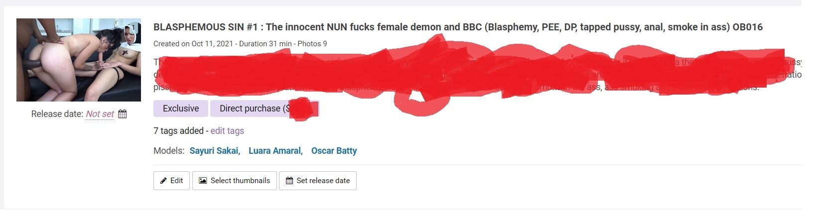 Looks like a real fun scene. I'd totally pay for some blasphemy sex. All those tags looks good to me.