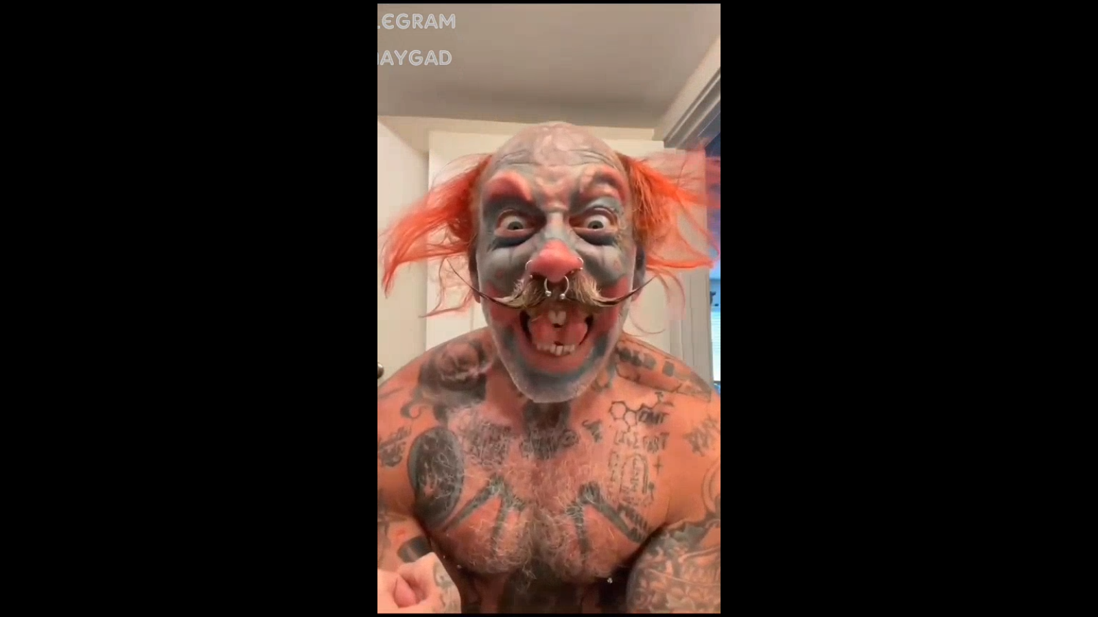 one of the craziest people ive seen is this evil clown (i think his face tattoo is real)