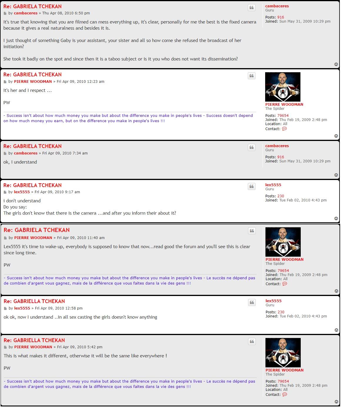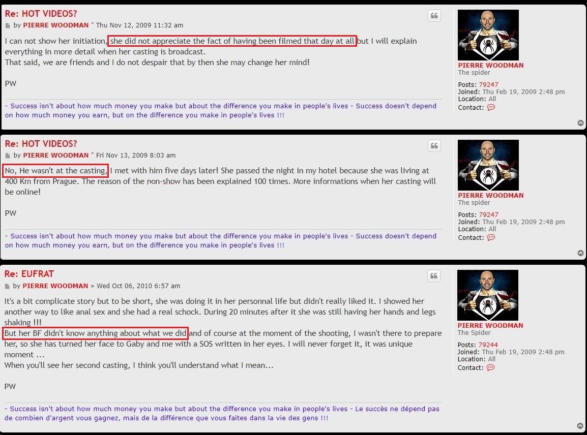 Mister Ananas wrote:You are describing the way Woodman operates, not necessarily the industry as a whole. Agents enable him and are part of the problem, but some agents are good and some are not, so there is no uniform standard of behavior across the board. It is most accurate to say that porn, as an activity which operates on the “fringes” of mainstream society, attracts bad people at a higher-than-usual rate, but not everyone in porn is bad, and (I would venture to say) most of us are not.I say this because when his "sister" was interviewed she said that she didn't want her own casting showing because it was "private and not for public viewing". I know of at least three other women (including Eufrat) who used the EXACT same wording when they were asked by PW why they wouldn't sign the release. Maybe she knew the only way to really hurt him was to hit him in the pocket and his ego by telling them to do this. That would be the only respect I would have for her.