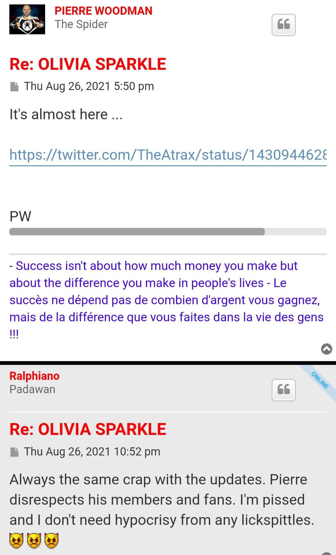 Ah Valencia, I see your Ralph and raise you Legion23! They are for sure the next members to get booted from Pierre's site. Legion23 has a very good point, and instead of sorting it, HE'S being made to look like the one who's being unreasonable!! It's a complete joke! And these aren't guy's who have just turned up to cause trouble Legion has 395 posts under his belt!