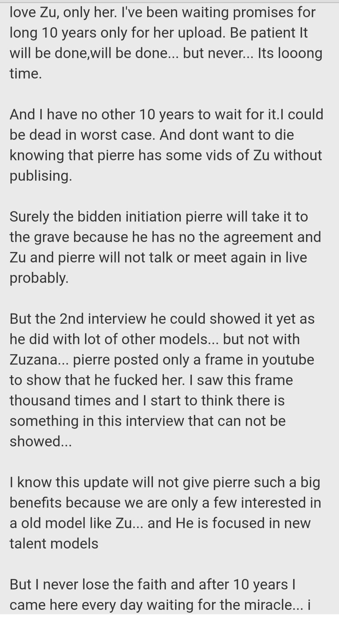 I think the fact that Woodman is completely ignoring both guys there is telling you what the chances of seeing Zuzanna are. As I said, most models will have refused to let him show their "initiations" for obvious reasons. And now that most of them will have retired and had families of their own they will definitely NOT want their husbands or children seeing them choking on his cock and being sodomized by him. I mean, would you want to see your mother being treated this way?