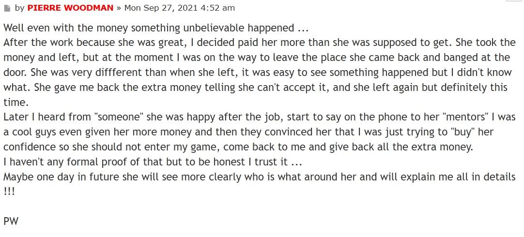 The fee for the model has to be decided beforehand, as in any professional production, obviously PW doesn't believe that he has to follow the rules like the others professionals, he feels superior, he needs this ephemeral thing to make believe to herself but above all to the others that the girls are not there for the money. And gives absolutely disinterested gifts because he is a good man :D