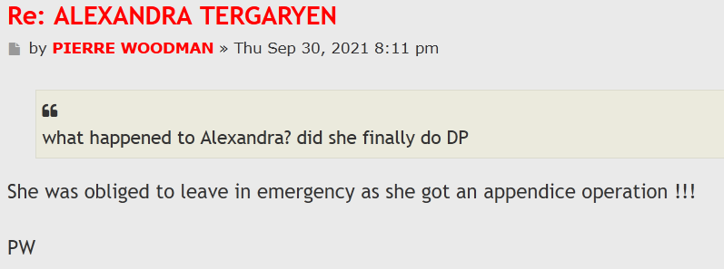 The appendice operation was after, only today, and certainly not in emergency since after she left Budapest she was posting stories of her in the clubs dancing, but well...