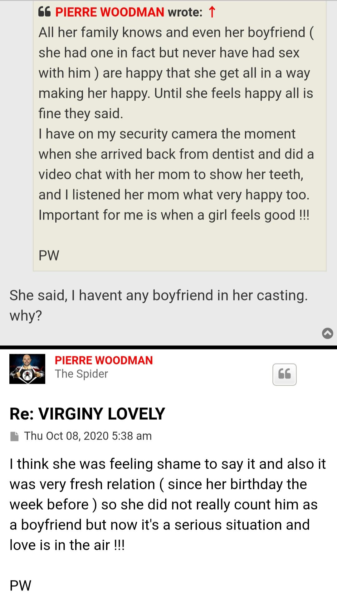 As you can see here he got caught telling another lie that she had a bf so he can make himself feel more important that he make it seem to his members that he had sex with her and not even her Bf did it. Then he makes up a story that she was feeling shame to tell she had bf. Which doesn't make any sense.What happened to his "authentic" castings lol. There isn't any. He just tell them what to say.