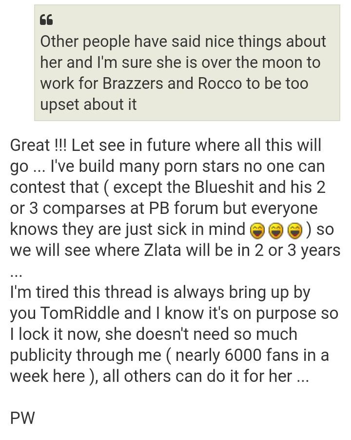 "Nice find..."ValenciaCF wrote:Well he will never show any evidence of Liz Rainbow because there is no evidence. He was supposed to do it after holidays but it was all a lie. Don't take a rocket scientist to know that. All he had to do was post the video to prove it, but he posted an edited pic instead and he calls it proof lol nobody care about your fake pics. Put the video online and show everyone! He can't do it and he was feeling "nervous" which is why he locked the thread just like he did Zlata now. While very few of his RGS is "real" you can clearly make out a fake scene from a real one. A real scene there is no "cuts" the video plays entirely. You can clearly see Liz Rainbow and many other scenes how he make his "special effect" edit for the piss part not shweing how he is pissing in her mouth and he think we are fucking stupid lol Why he don't put the whole video??? Because he's fucking lying plain and simple. So this Liz Rainbow evidence he promised will not happen because all know PW doesn't know what a promise is. He lies to everyone.