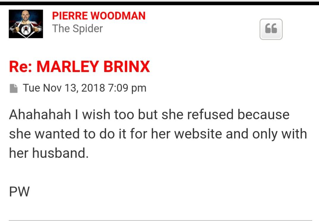 About Marley Brinx. PW did his best to try and brainwash her to show messages she had with LP boss and make him look bad but he didn't do anything wrong.