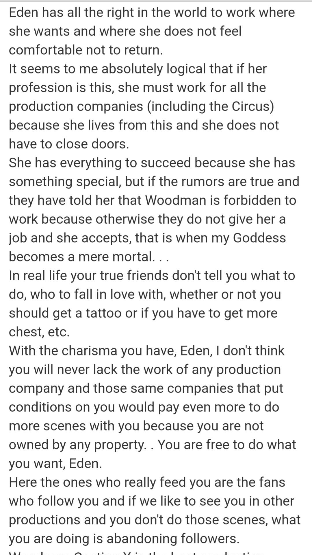 ValenciaCF wrote:Valmont is the black sheep of that forum. One of the biggest ass kissers on there. Get one thing straight Valmont...Eden is not a stupid and neither is she manipulated by anyone or controlled by any dark force. You and your master should stop spreading false remarks. She is smart and can make her own decisions, uncontrolled by anyone, which is what your master does not like!!! She has her [spam] as well. She can work with who she wants. Nobody has influenced her so honestly just quit speaking rubbish.Time to accept that your master is full of pretense. The girls there are not there because they enjoy it. Ask yourselves why so many girls don't even retweet their work from Pierre Woodman. And these are not even girls from LP either. They don't consider him or his work professional. Many of them have traumatic experience. Did you not read the messages from Emma Hix??? And she is someone considered to be one of the most famous of the world. For sure your master will say she and other girls are making it up and show the manipulated messages to disguise the truth and hide the evidence. But here you have the direct messages of that conversation with Emma Hix. There are many girls who have been brutalized and even raped on his set. Go watch the Anna Taylor video where she is brought to tears and praying to God that the horror show ends. Or the Lex Lowe video where her rights were blatsnly taken away from her and she was violated on set. No discussion or consent to what was takimg place. She was forced into that situation and then blackmailed and brainwashed.