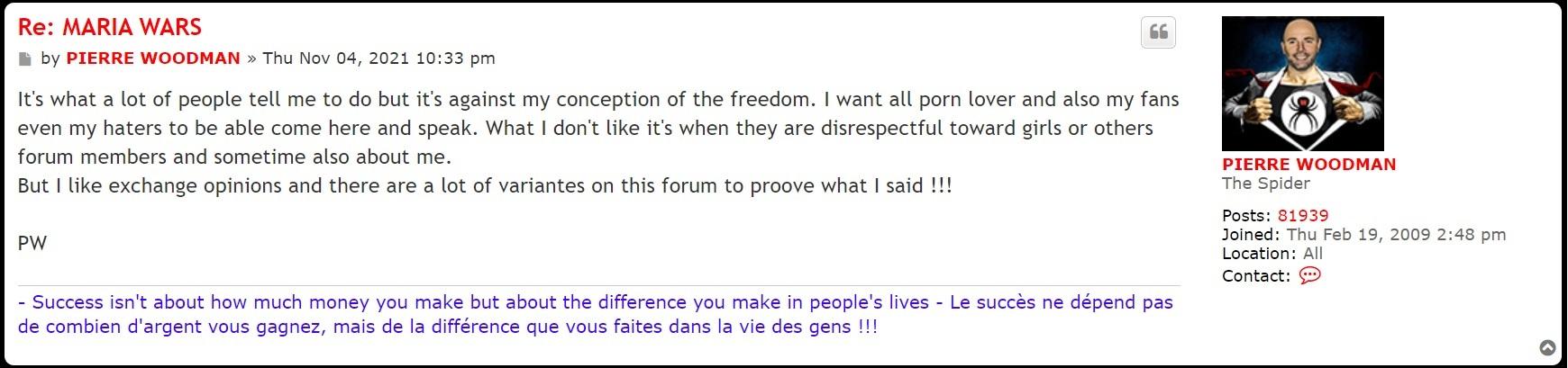 Re: Pierre Woodman: "I am a bastard and break the will of girls"