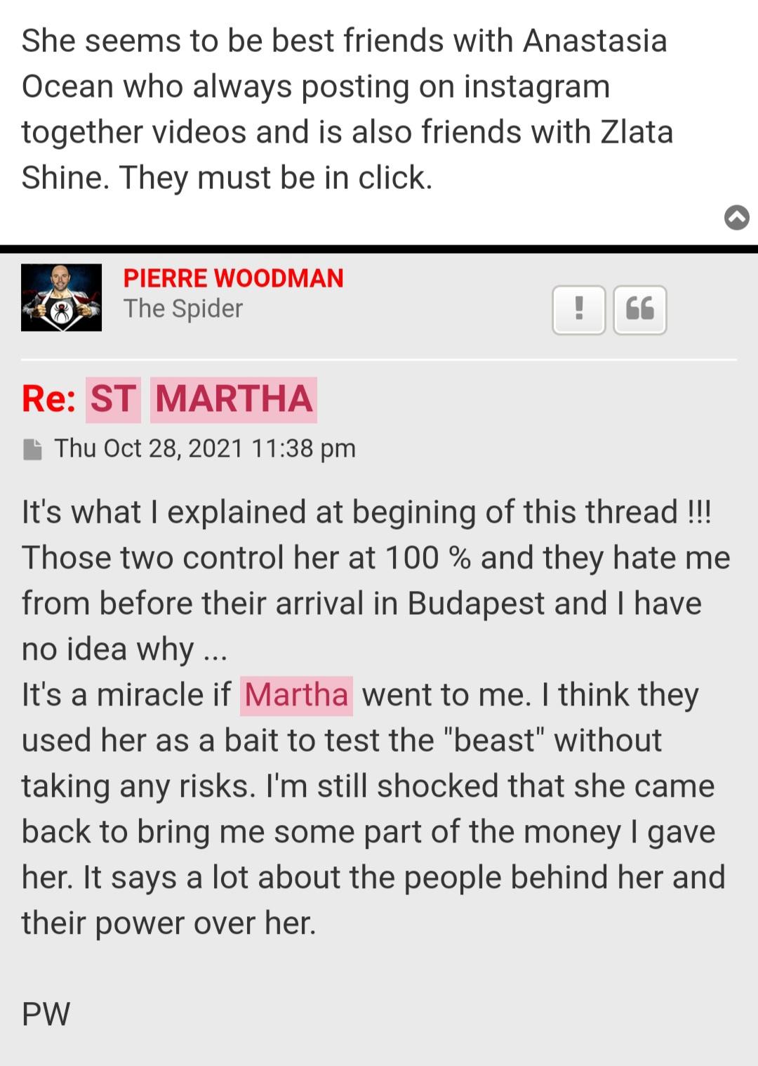I believe you 100% because here he is telling how he gave extra money to St Martha when she worked for him and she had come back to return the money then all of a sudden his relationship with her changed. Typical Woodman. He suggested her 2 friends Zlata Shine and Anastasia Ocean told her to do it and then he went on to call them "cows" thats how much respect he has for girls. Girls he never worked with or had an interview with but he have such big mouth and so rude to them. He is a bitter,jelaous pig, rotten to the core.