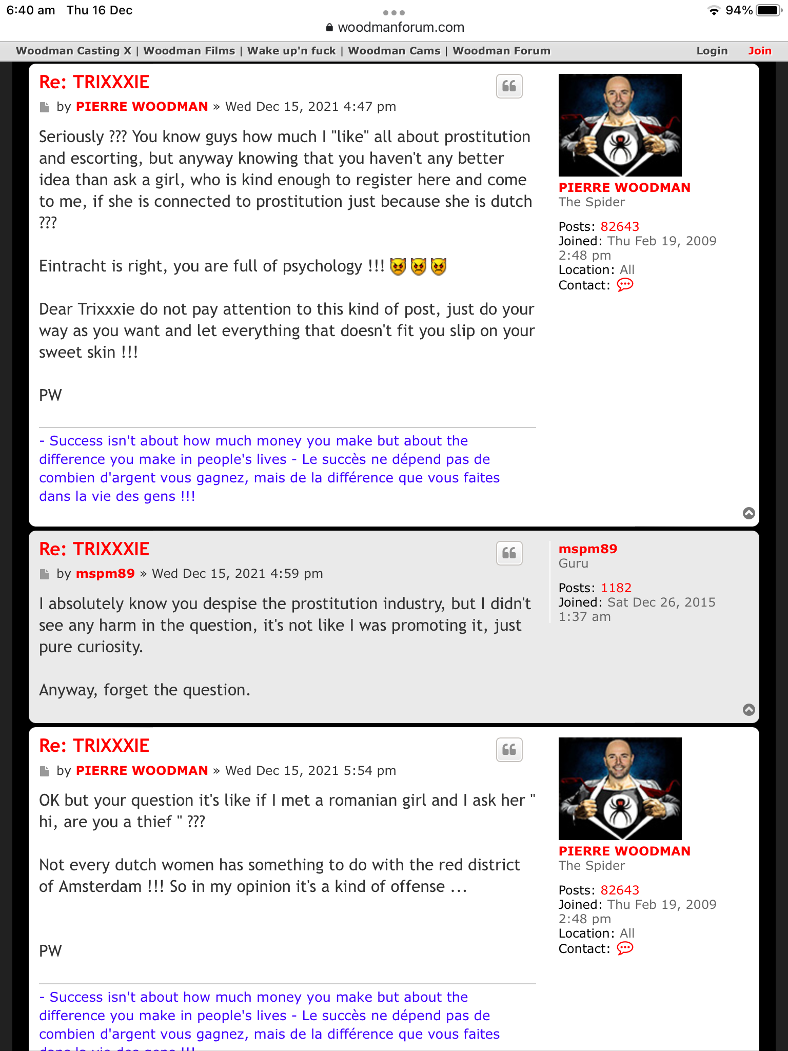 Re: Pierre Woodman: "I am a bastard and break the will of girls"