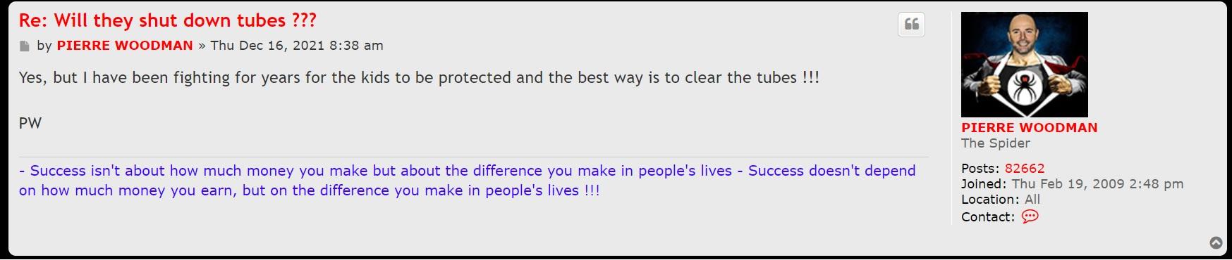 Let's get something straight Pierre. You don't give a damn about children seeing and being affected by porn, all you care about are the tubes taking money from yourself. You're just using "the protection of kids" to try and protect yourself..... as usual. This caring about minors crap you keep coming out with makes me sick because you like to show your members how "almost" illegal looking some of your conquests have been. That strongly suggests a man who only uses a number as a limiting factor.