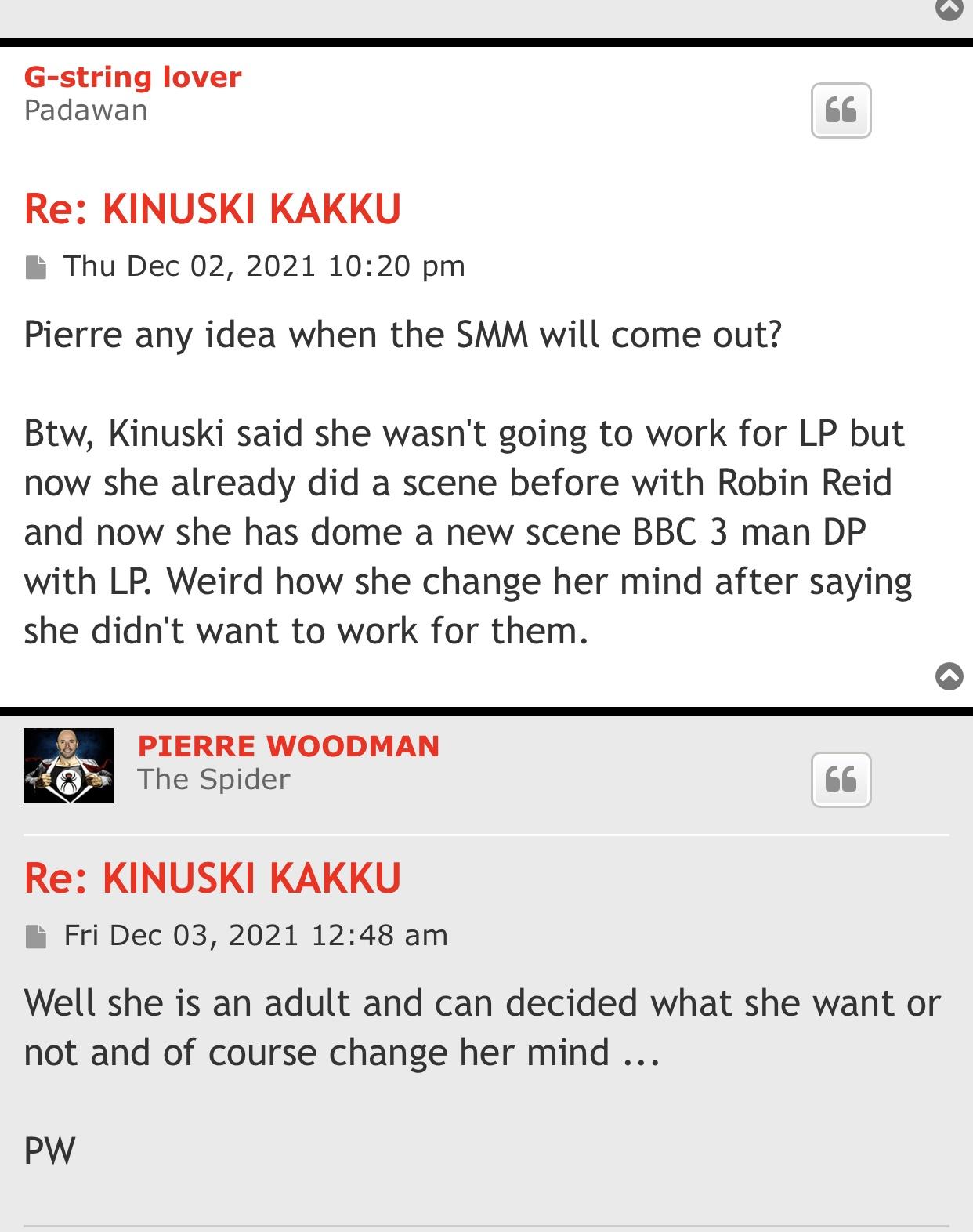 The matter here is not that Kinuski changed her mind but the initial brainwash and toxic info about the studios of this platform coming from Woodman when she debuted in this biz. Without this psycopath involved she would not have had any problem to have shoot a simple bga with me under the old Legalporno logo, no drama and maybe now she would have many more scenes in her pocket.
