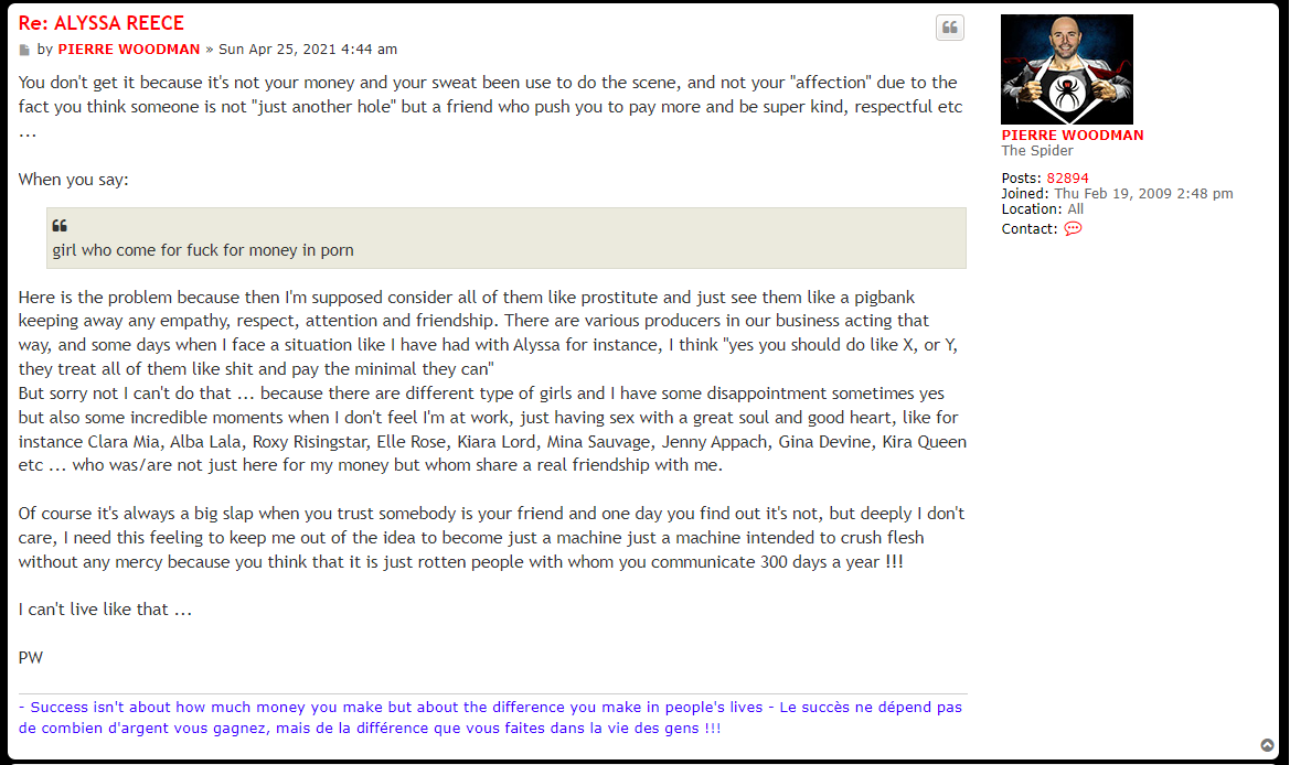 J2369___ wrote:Lol rich man like you, their are plenty of rich men in the world PW, you disgusting old pig, I have to laugh at how this fuckhead always has to lure LP girls to him and talks about it being there first anal in porn or whatever, fantastic read by Alex, what an absolute pathetic human being he is, no wonder no one likes him, or so few do.