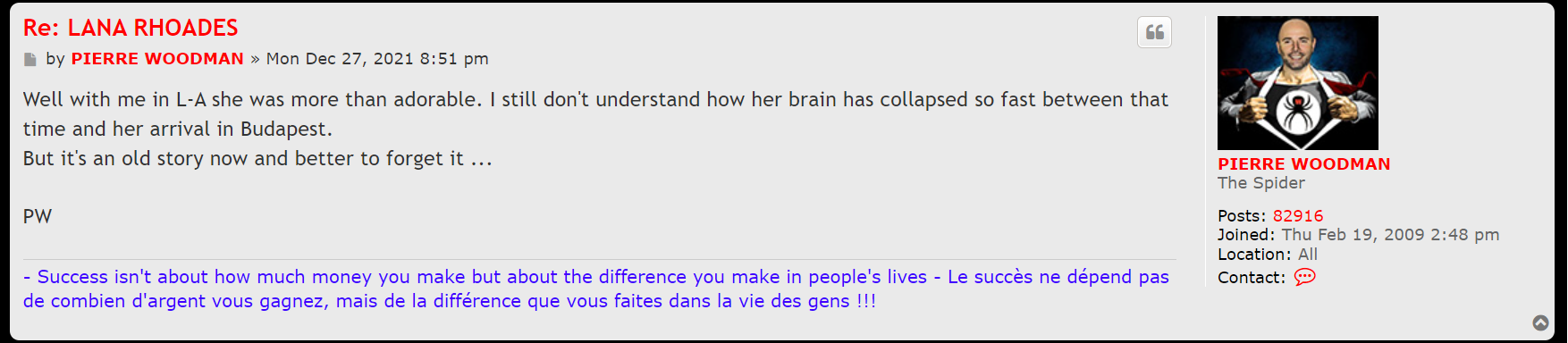 , even if you have already viewed the topic dozens of times in the past. Easier than that, wtf...robin_reid wrote:She published this same pic on her social media and sent same to all people she worked with etc. But as always he need to brag to his members like if what Marina did was something special only to him… Ridiculous…