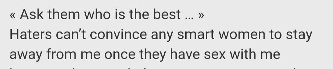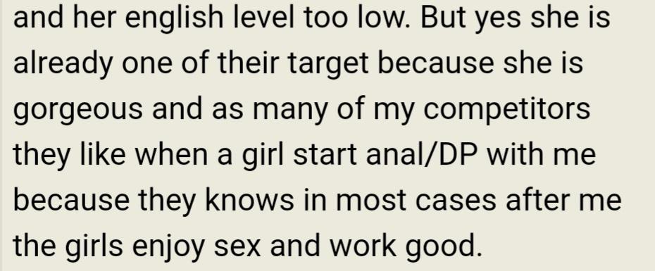 What is this bullshit that he write??? A girl don't have to start with him to be good for a conpetitor to like her. This guy has no brain cells. I already had girls tell me that sex with Pierre is not the best. They don't even like anal and that they did it with him only because he has a lot of money and because the sex was "easy" because of his small dick. Their words, not mine. He need a reality check to come down to earth. He behave like he is some kind of God where he do things better than anyone. He is not a good starting point for anyone.