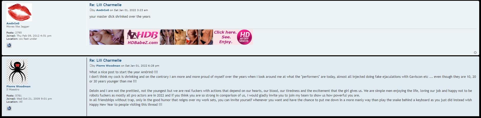 Its going to be interesting how he responds to the Lili Charmelle comment, he's so far answered everyone's posts except that one so I guess we're going to get the full page Woodman Sermon full of more lies. This guy below on the Euro Babe Forum passed one little comment and got a speech back from Pierre criticizing every other actor out there! The guy never knows when to stop digging.