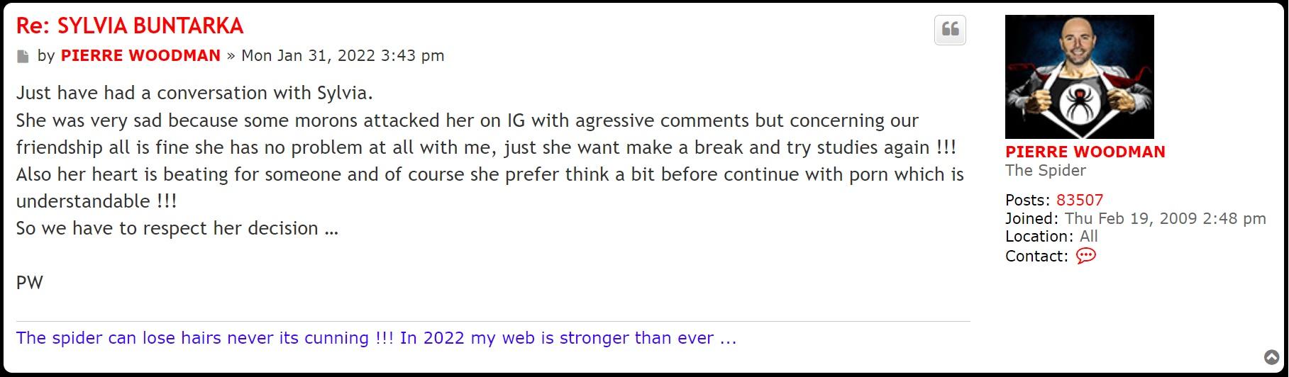 He brags about being happy having a lovely family...ok, so why he spend halt day out of home, fucking the brain, than the ass of new encountered ppl. ? I think he must have to spend couple hours every day editing,not to mention he's every hour watching the forum..He must sleep couple hours.Counting this time, yeah cool family life.