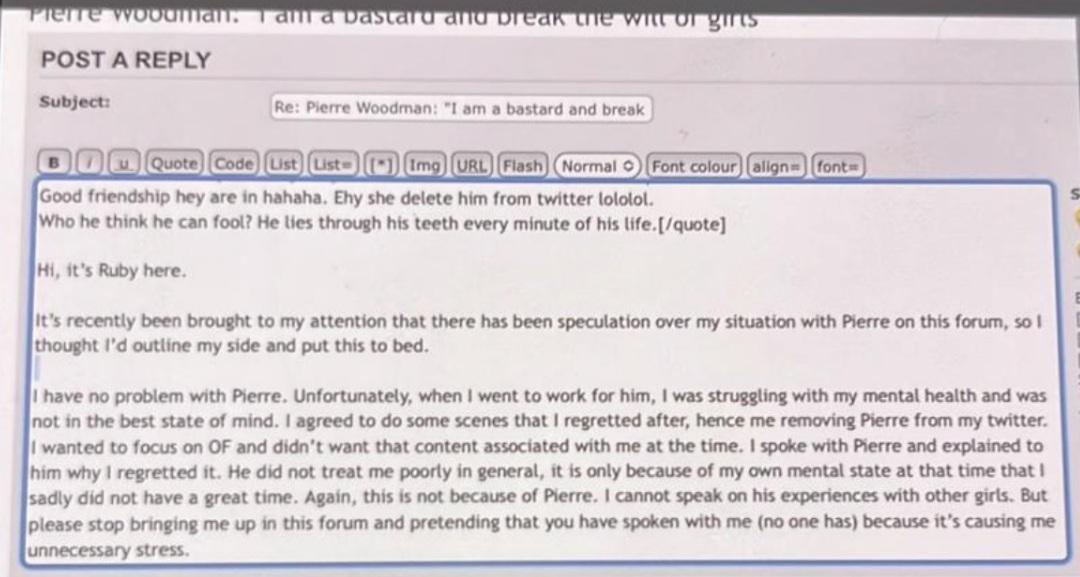 Re: Pierre Woodman: "I am a bastard and break the will of girls"