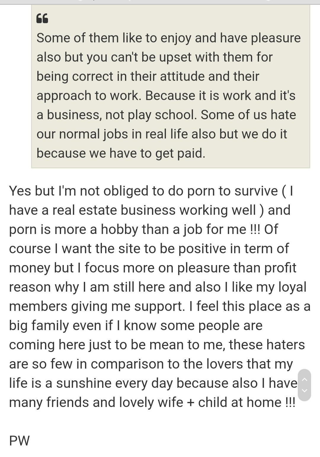And people even believe what he says. Then if it was true it would be serious...so: 1- Brillbabes sends girls there without saying what kind of job it is, how many men etc. or 2- PW is just a liar, fakes and making hype about himself.