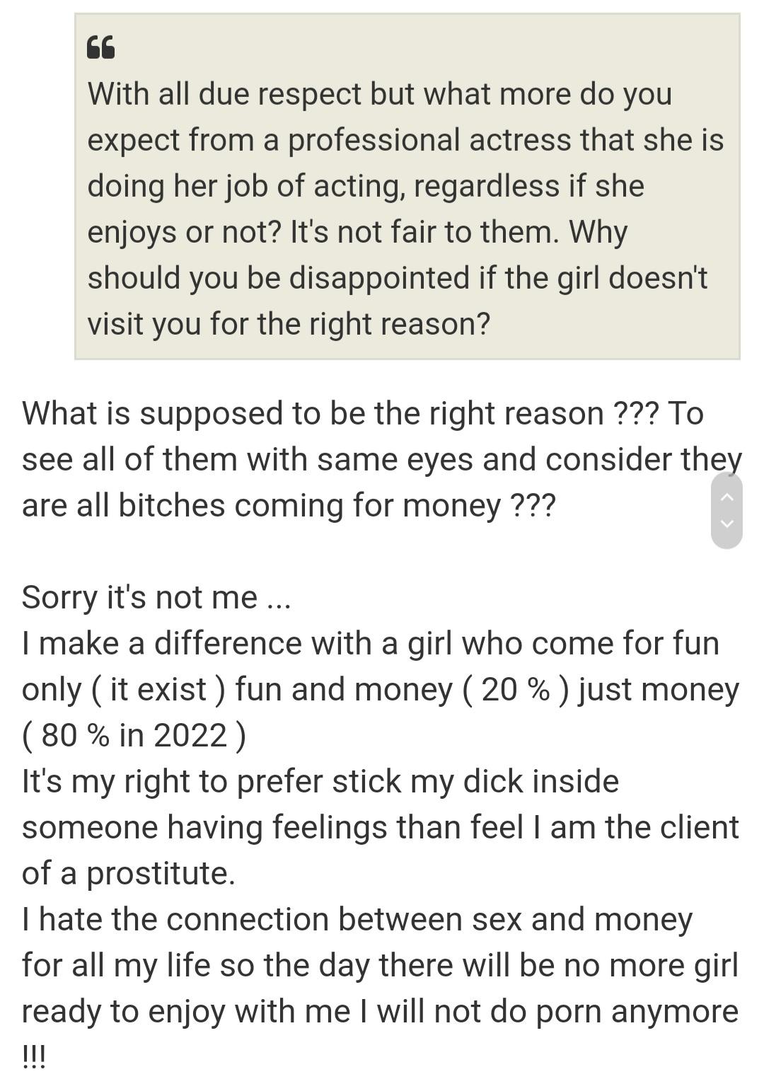 He also talks about not wanting to fuck mothers and daughters because it's against his religion but he did it in hus private life...but on other parts he say he is atheist. I think the only person with a slow brain here is him!!! So he didn't show her full casting. Made her sign it but inly to show 3 screencapture and no sex but he paid het. So what is that if not escort work ?
