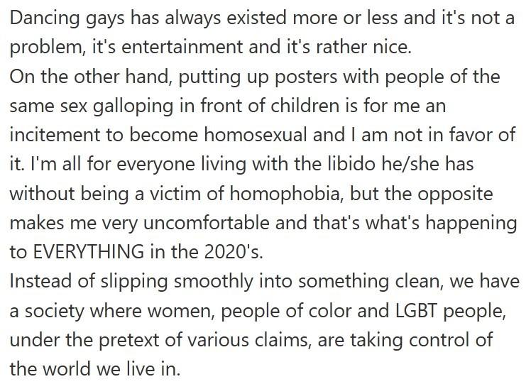 (I hope that when Grandpa explained anal sex to him on a ''piece of paper'' (yes, sure...) it wasn't ''too gay'' for him... but I am sure that as a good grandfather he will have avoided to let him see two people of the same sex kissing each other, in fact luckily for him he has become a real hetero white male and has not been 'corrupted' by the ''incitement to homosexuality''...(his words) )