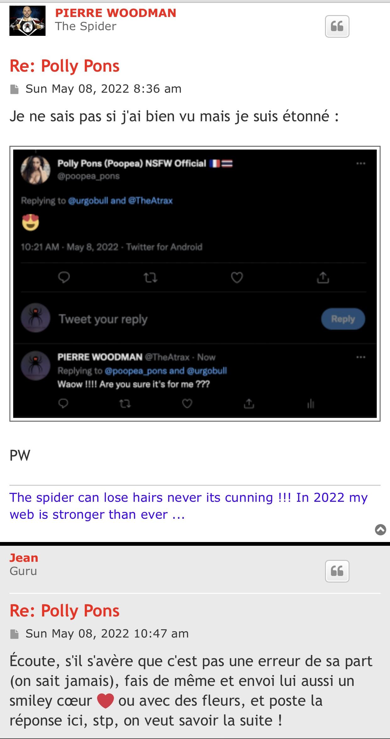 robin_reid wrote:Woodman and his moron Jean thinking that the emogi with heart eyes of Polli is for Woodman LOL