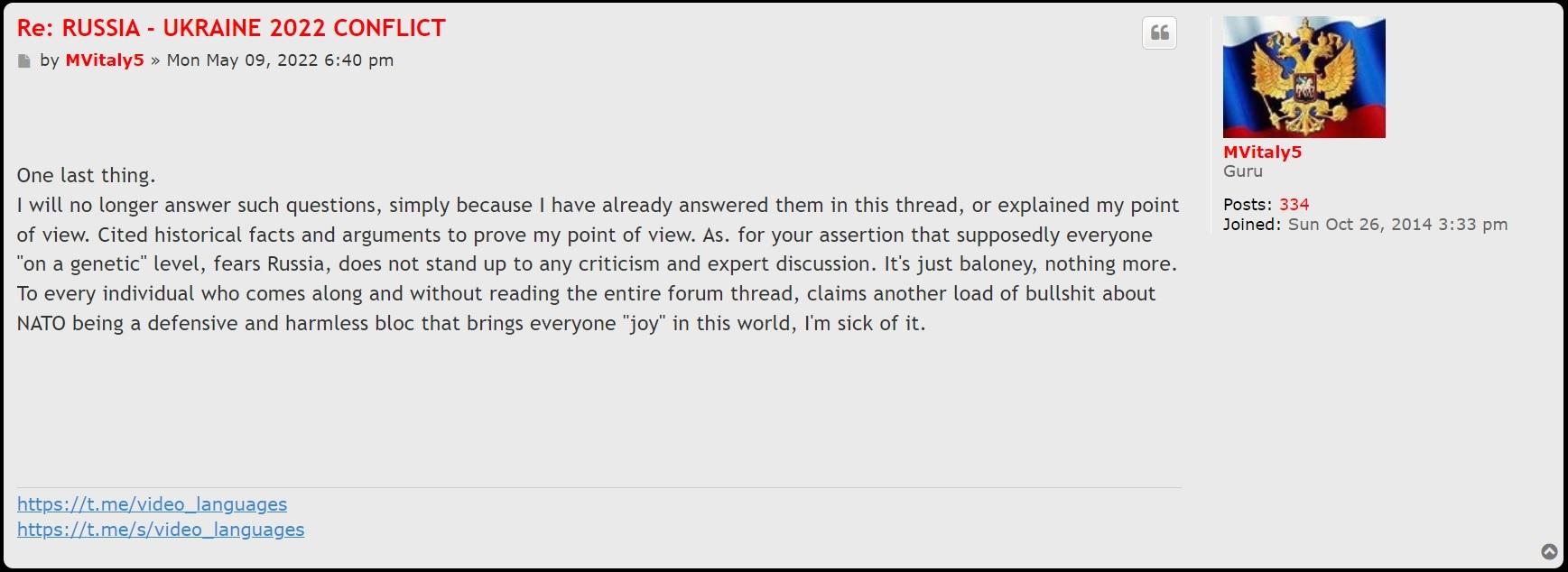 After being a right wing extremist, an spreader of fake news and conspiracy theories, Putin-fan him self, after sacrificing long-term members for covering the ass of Russian propagandist Vitaly, he is now pissed that some members in his forum still have the balls to stand up against the lies posted by Vitaly and Woodman: