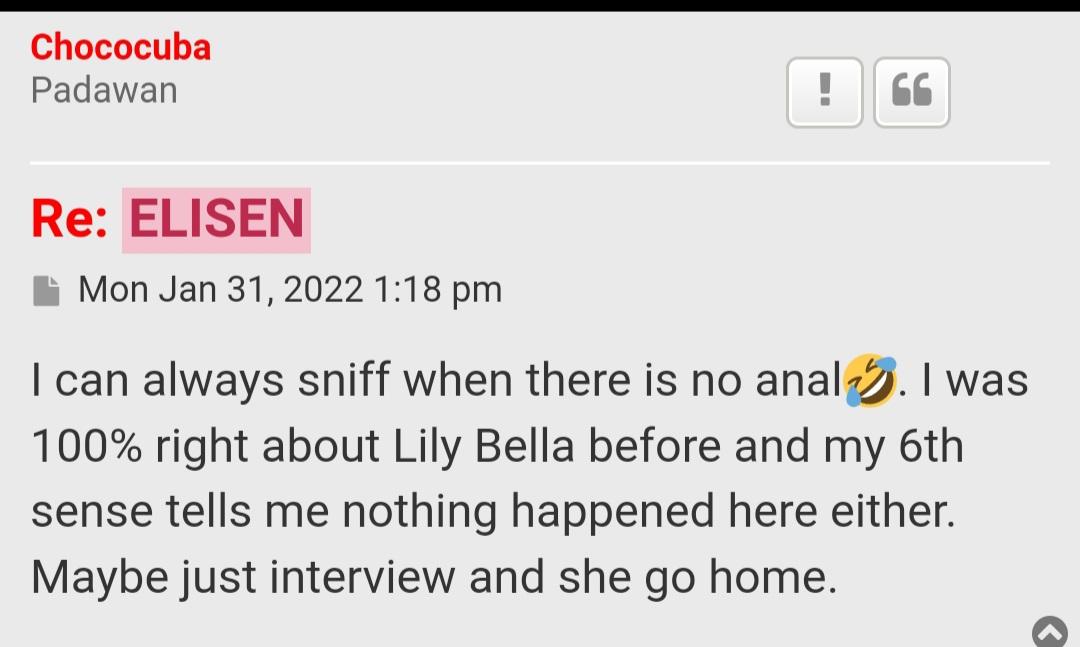You guys remember ELISEN? The girl that I proved was already an "escort' that he casted more than a year ago and decided not to tell anyone about it until I discovered who she was. She had confirmed that there eas an interview with PW and it waa only a blowjob. PW then made his stupid jokes about the PB guys speakimg bullshit. Guess what??? The only one speaking bullshit is him because I was right!!!