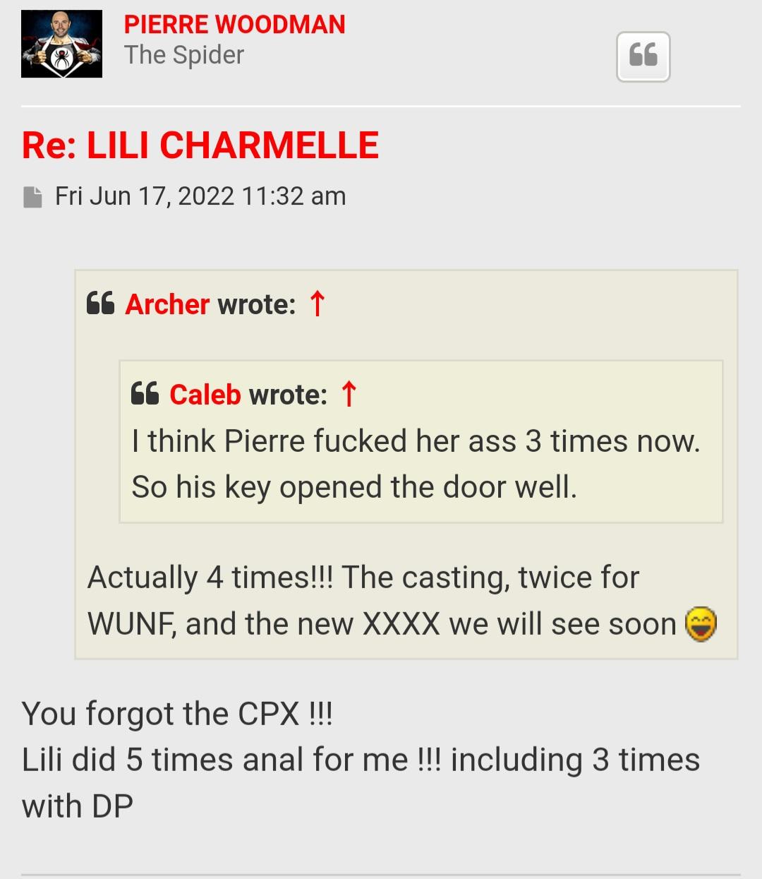 Although I can't name who they are I can GAURANTEE you that at least one of them has told me (in confidence) that THERE IS NO VIDEO OF HER BEING INITIATED by Pierre Woodman. She was sent for a CLOTHED casting. Woodman offered to show her his "special system" ..... She refused, someone from her agency was there with her and can vouch for her. He asked her if he could tell people that he did a full casting because it would get her jobs!!! She agreed. But I say again THERE IS NO CASTING for this model. I only wish I could call Woodman out with the name of this one because his statements on his forum that he sodomized her is a complete and UTTER LIE!!.......... That will also mean these other castings that are always coming next week, next month, and next year, are a lie too.