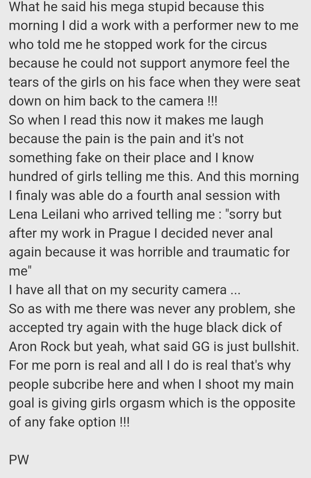 He keep trying to paint a picture of himself where the girls have no problems with him,only with others. What is this bullshit he write no pain with him and only tears with others? He has dementia or what? He forget how many girls he made cry on his set. Anna Taylor for example that girl was raped and balling her eyes out. Or emma Hix saying it was the worst experience of her life in real messages and was brought to tears, and him saying the opposite on his forum. Or making the girls ass bleed and screaming like they are getring murdered. That time the girls are not in pain? You cam clearly hear the cries of girls during his scenes in so much pain. He must his stupid lying mouth only looking to talk shit about othee companies especially LP. Now if LP was not a good referemce for him then why he's using their models??? He accuse all their performers of using injections. So now he got Aaron Rock to work for him :D :D :D Aaron didn't come from the circus I guess? also stating he worked with a new performer who left LP but we know he's talking about Aaron. I think you get the picture what he is trying to do. He's obsessed about defaming LP. But the only one who reveals his true colours is him!