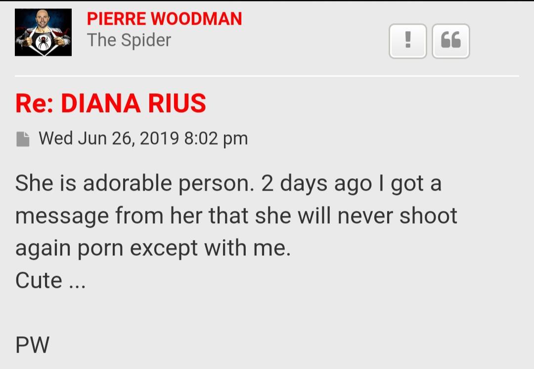 What this bastard say is a bullshit as usual. And also he lied years ago telling that Diana did first anal with him, totally fake, her first anal was for 21sextury with Totty as male actor, in Budapest, on her first porn tour there, Woodman was not even in Budapest at that moment when Diana was there for first time.