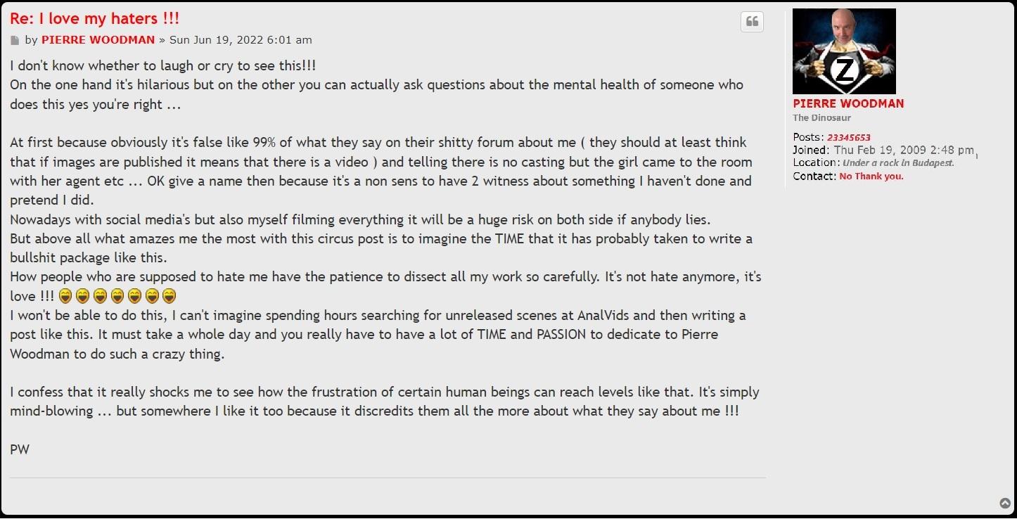Re: Pierre Woodman: "I am a bastard and break the will of girls"