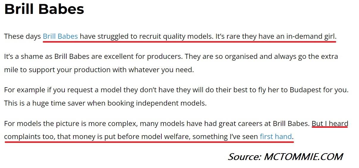 some agents [note. Read: Brillbababes & owner/manager: Eszter) don't care enough and they send girls to test these fake directors. Dan Leal:It's