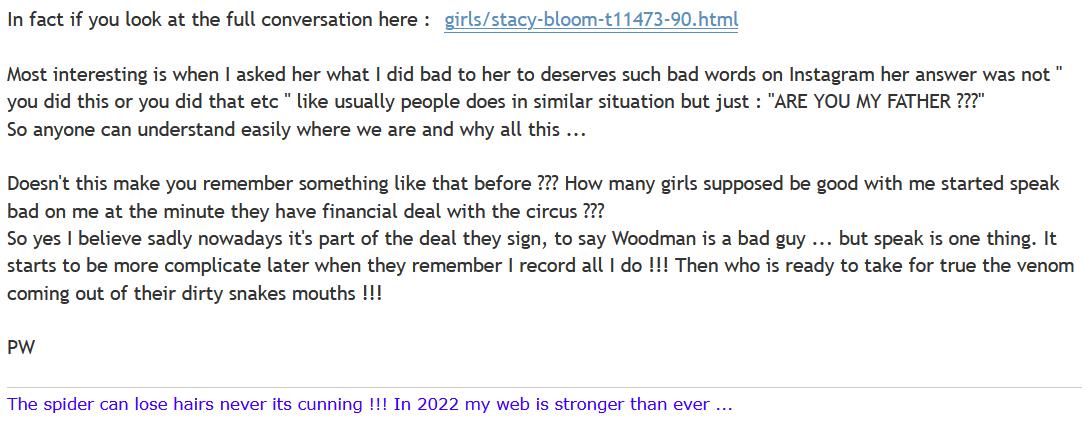 and in what state of mind instead was Ruby Sims/Reign when PW coerced her into doing something that she later regretted doing if I may ask? (Her words, which PW himself posted...so stupid):