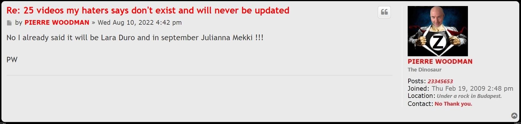 Gebier's misogynist chicken brain simply can't handle that a woman like you, kiara lord, luna corazon, juliana grandi and a few others puts him in his place. Then his chicken brain will collaps. Anything you say and even your mere existence adds fuel and oil to the fire. Which is good thing, because a misogynist narcissist dinosaur like gerbier isn't used that women speak up. That's why he is married with a fellow chicken brain and totally submissive and surely soon-to-be-too-old broad like szofi varga (https://www.iafd.com/person.rme/perfid= ... -paris.htm), who used to be a pornstar and who's claim to fame is that she once received a massive cumshot for money exchange (so a BITCH by definition as per gerbier's words). viewtopic.php?f=184&t=13567&p=617140#p617095 Her scenes are hard to find nowadays as Gebrier tried to buy them all as to be able to erase her existence as a former professional cocksucker. Becasue she is "special" and "different", only because she was the "lucky" chosen woman being blessed to get bred with his superior dna LOL.