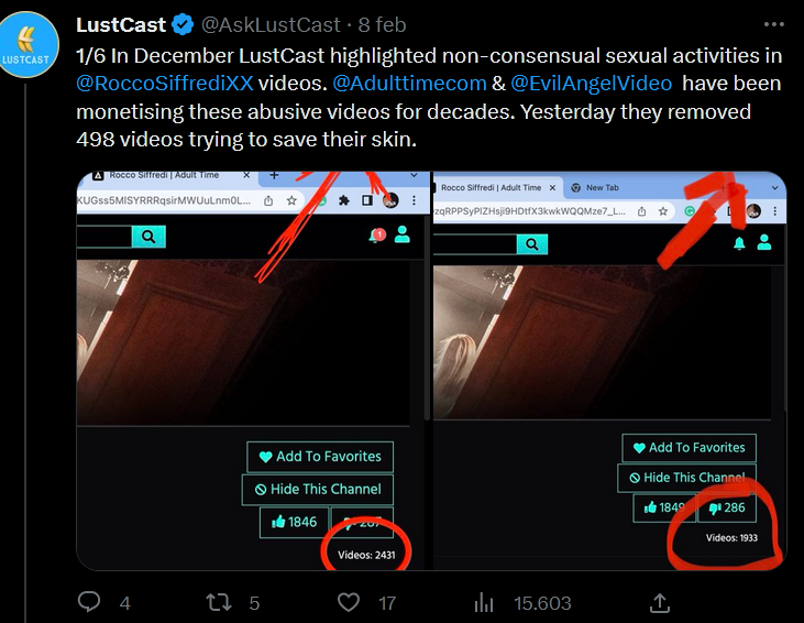 Now, it would be interested to have a full list of the videos that have been deleted by gerbier and contact those girls to see if they can have the cops put handcuffs on that guy!!