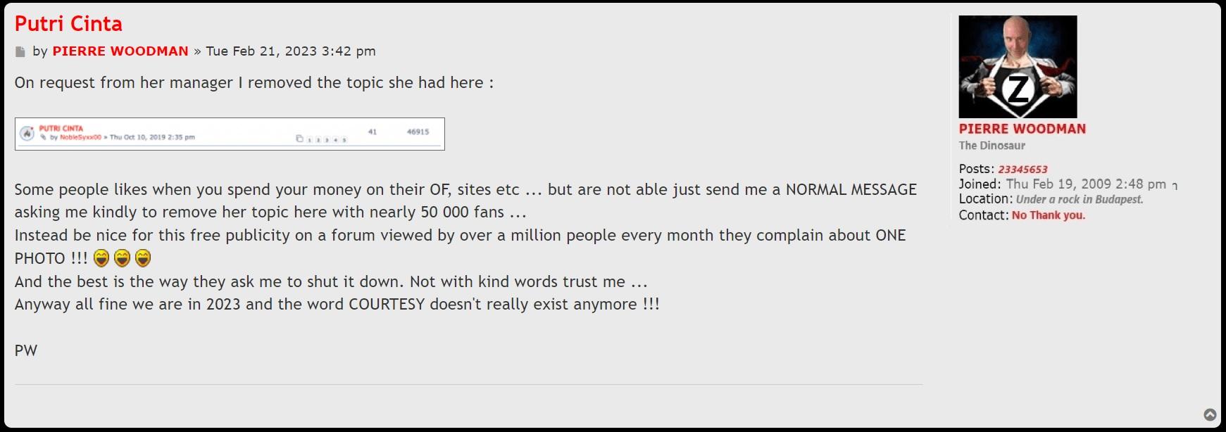 Pierre Woodman wrote:No need speak about her anymore she doesn't deserves any free advertisement on my forum
