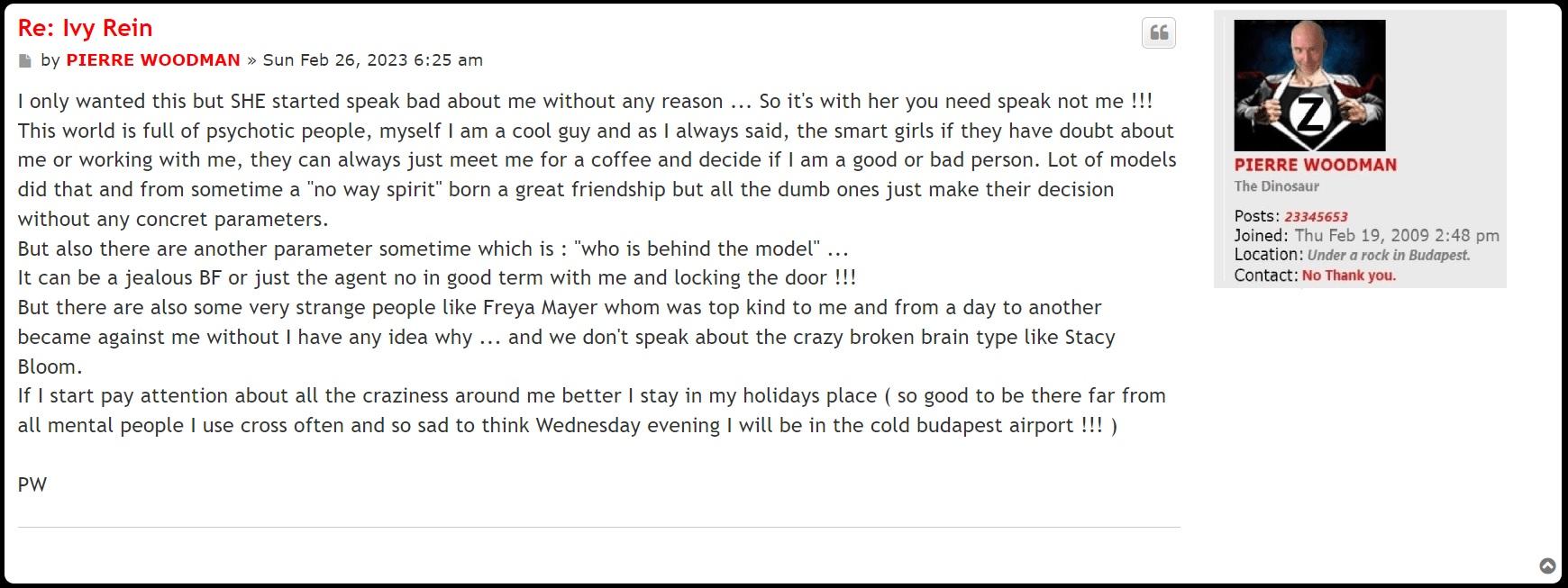 Pierre Woodman wrote:But there are also some very strange people like Freya Mayer whom was top kind to me and from a day to another became against me without I have any idea why