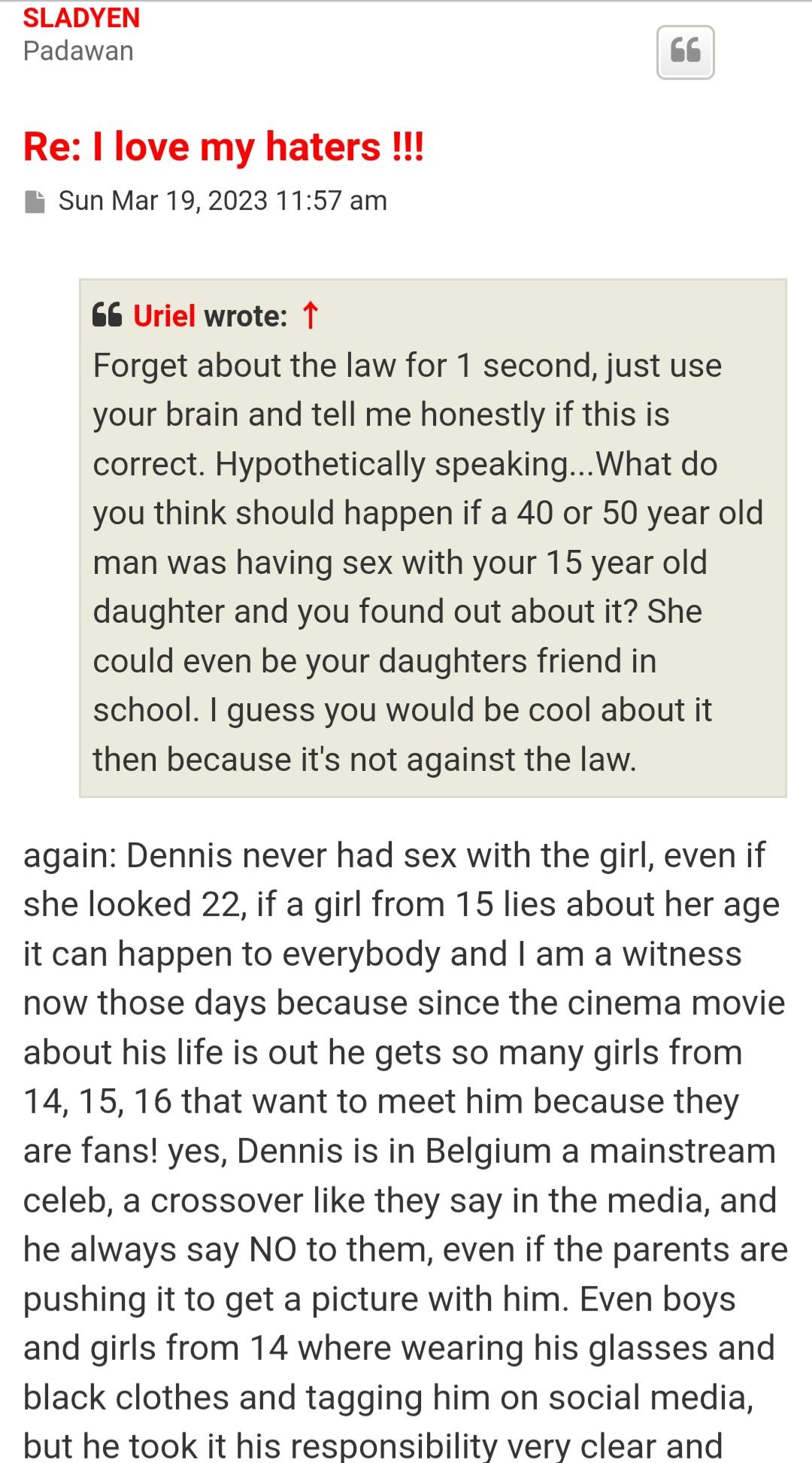 One more thing to add and to prove that Woodman is behind the Sladyen posts. Yesterday in the haters thread, Sladyen made that post. There were no images. If you go and have a look now, it is edited with pictures and her playing the lawyer of Dennis Blackmagic as if she knows everything but she is still a newbie in this business who knows nothing. The mistake that Porn Columbo Woodman made was adding pictures because once you make a post, you have about 30 seconds to edit it, thereafter you cannot edit a post. But today, by magic the posts wer edited with additional pictures. Only Woodman has authority to do that, members of the forum cannot....