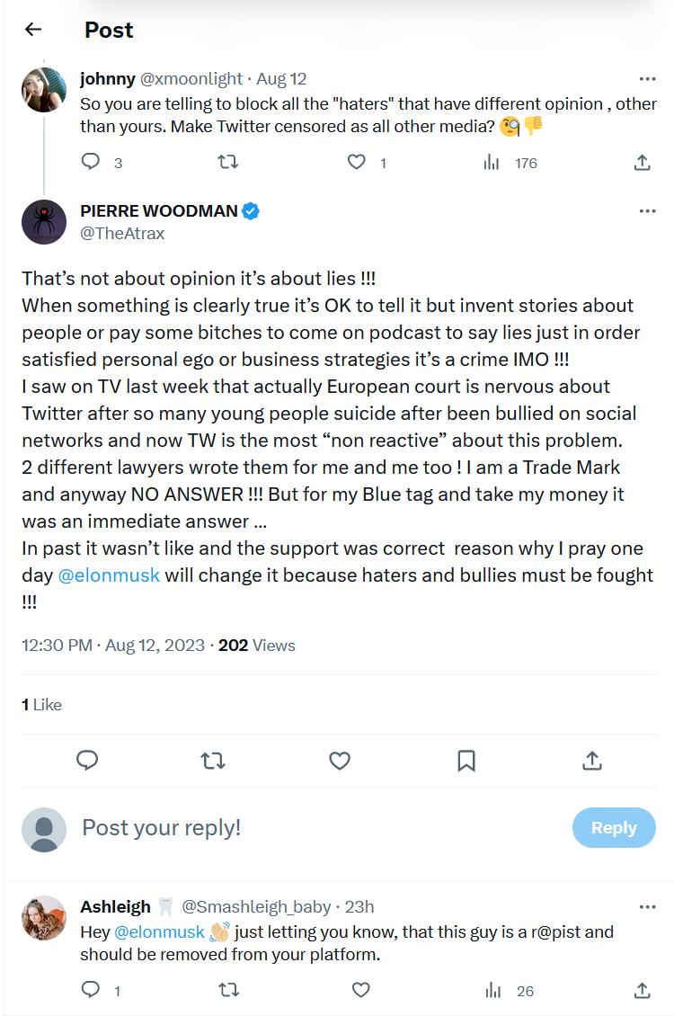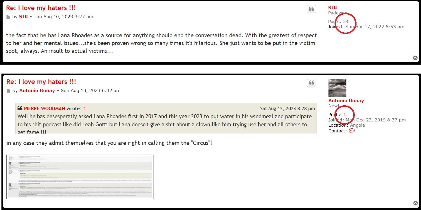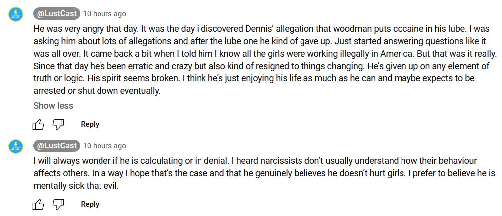 But, saying that an opportunity may arise as he's been raiding his "troll farm" again to try and scare Tommy, this time with a character called "osbrarj". Would Woodman risk someone coming forward to confirm Tommie's allegations? Would he risk something else coming to light? Could "The Circus" if he took them to court, request to see all his model statements and previously unseen BTS to defend their case? If it all started going south, how many of his associates would stand by him?