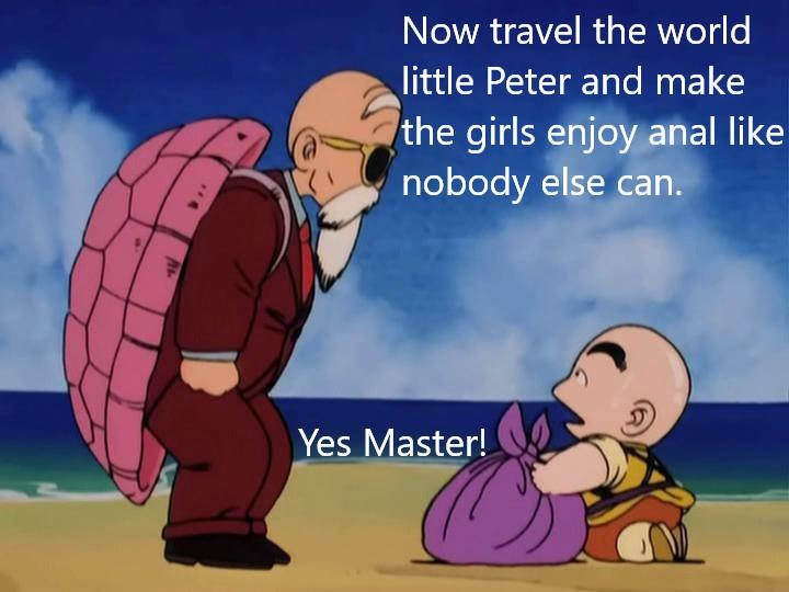 Recruiting and pressuring girls into what he wants no matter what, just to have some new "virgin" blood to sacrifice to the anal virginity gods. He as a 7 year old learning the secret technique of anal satisfaction by an old wise guru as a pilgrim while camping in the mountains. Now himself being the master at giving girls pleasure and be the one who can make them enjoy porn.