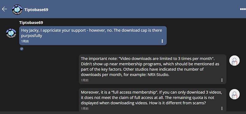 I am subscribed for 1 month full access membership of Tiptobase69. However, after downloading 3 videos it says "You have exceeded your download limit".