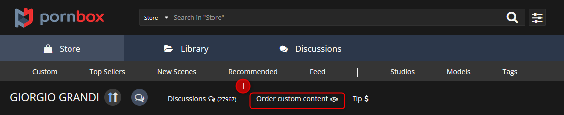 2 - I choosed the "Gio's studio" for this example, you just choose what studio you want that they read your request for a custom video. Now select the link "Order custom content"